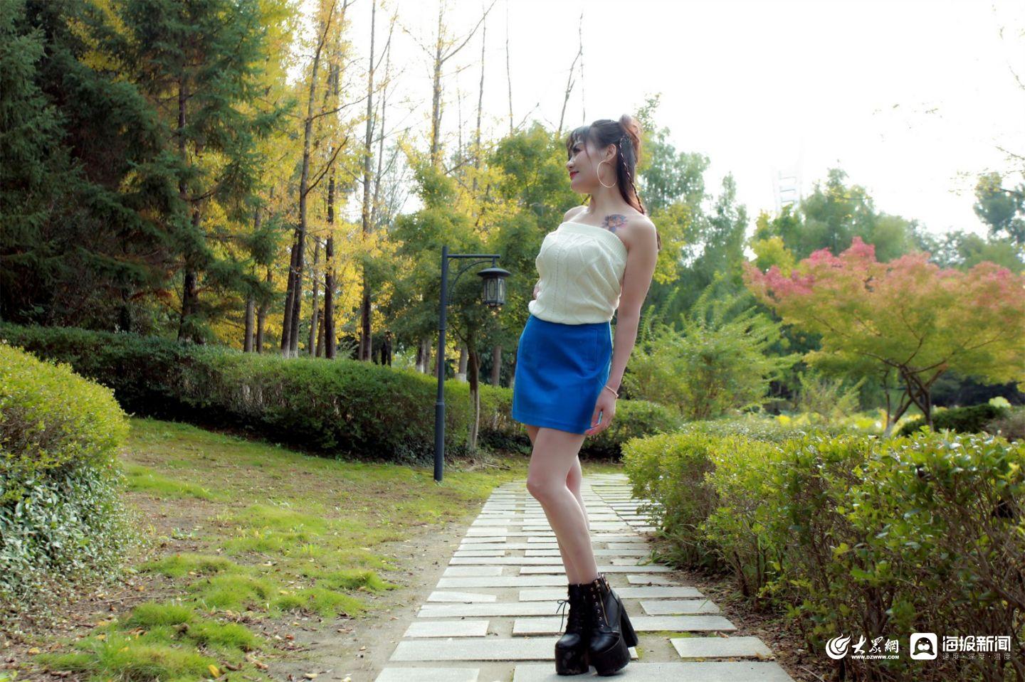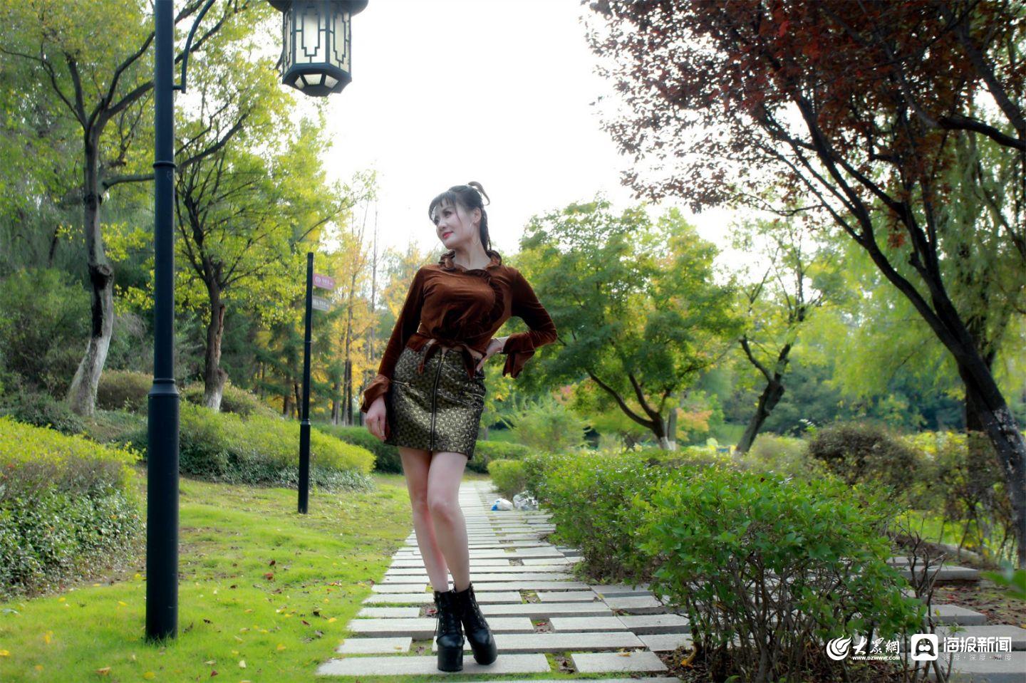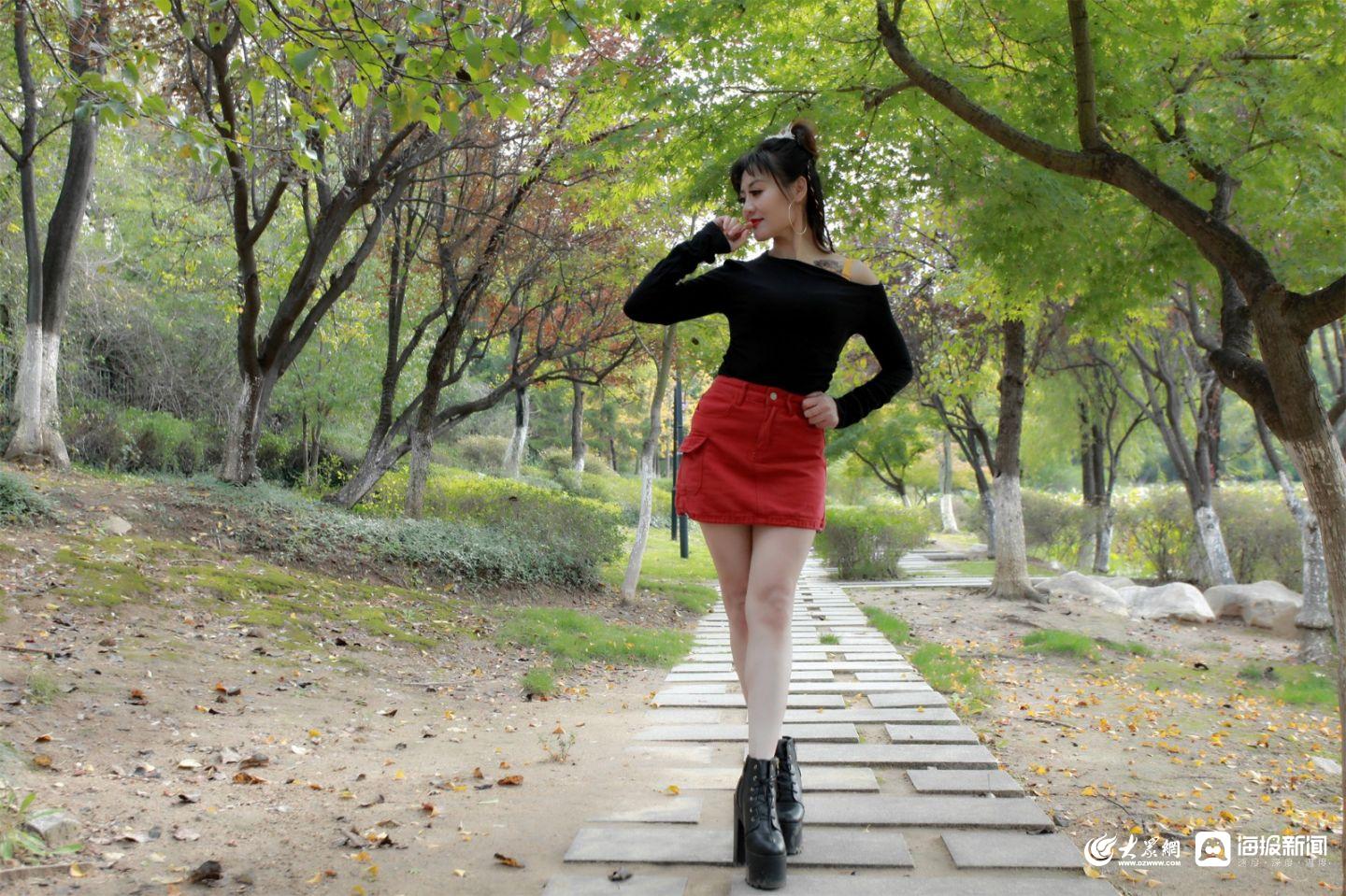 秋阳漫过肩头时,正落在模特臂弯的毛衣上,蓬松得像拢了团云。低头是亮蓝色裙摆垂落,抬眼便撞进一树热烈的红——原来秋也能这样鲜活地“跳”,跳出模特旧日里对它昏黄沉郁的所有想象。