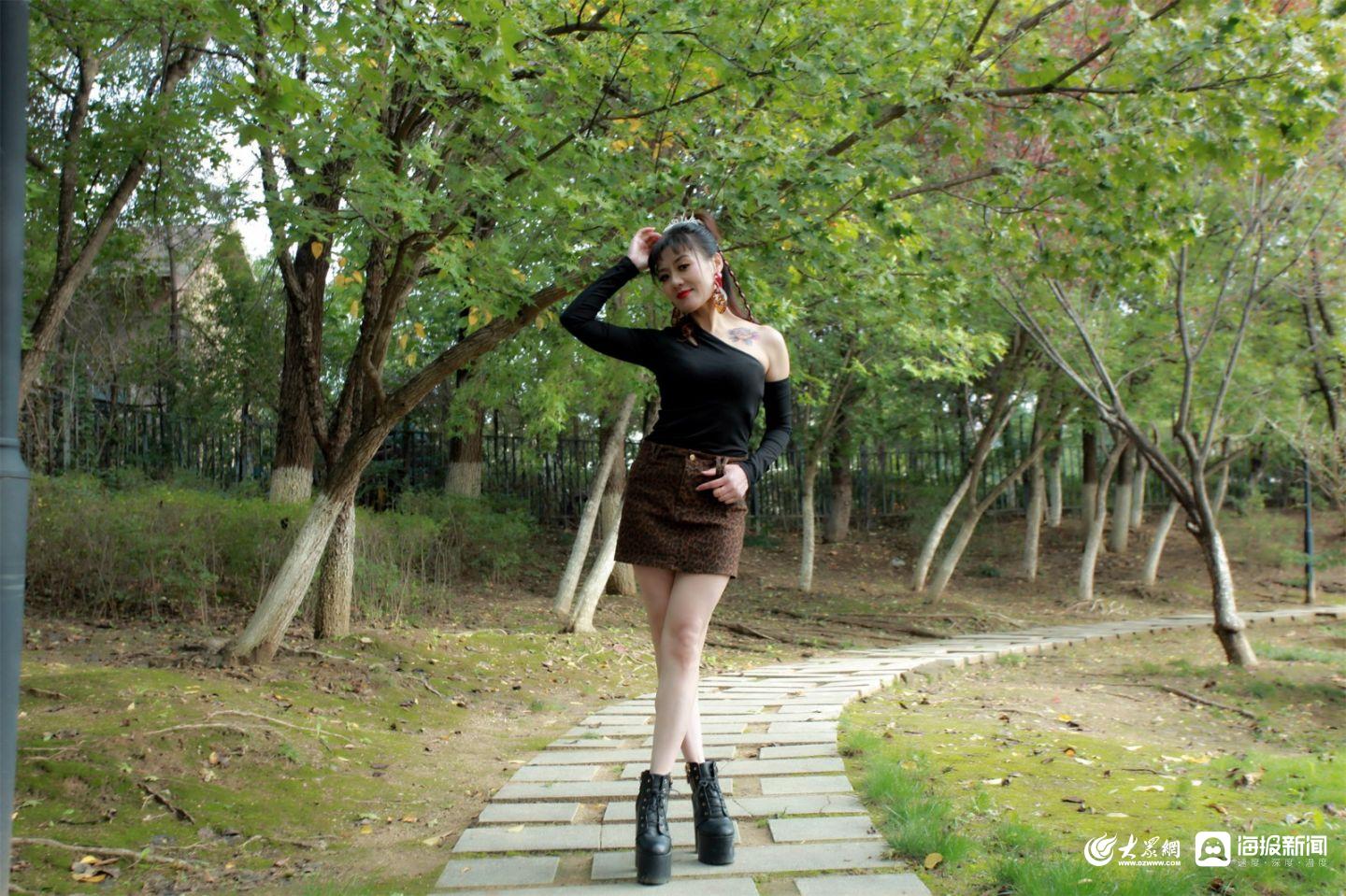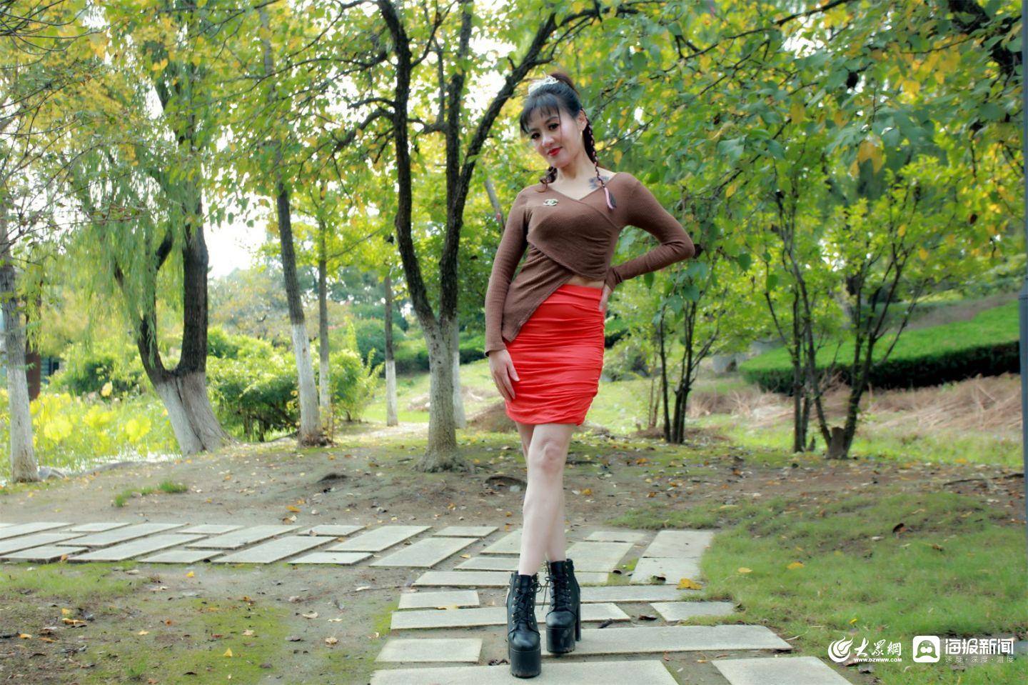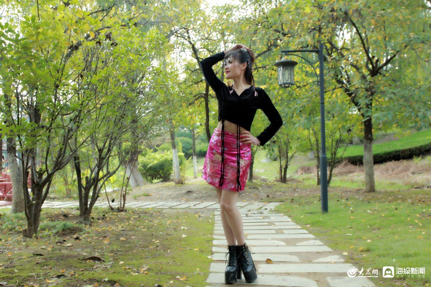 秋阳漫过肩头时,正落在模特臂弯的毛衣上,蓬松得像拢了团云。低头是亮蓝色裙摆垂落,抬眼便撞进一树热烈的红——原来秋也能这样鲜活地“跳”,跳出模特旧日里对它昏黄沉郁的所有想象。