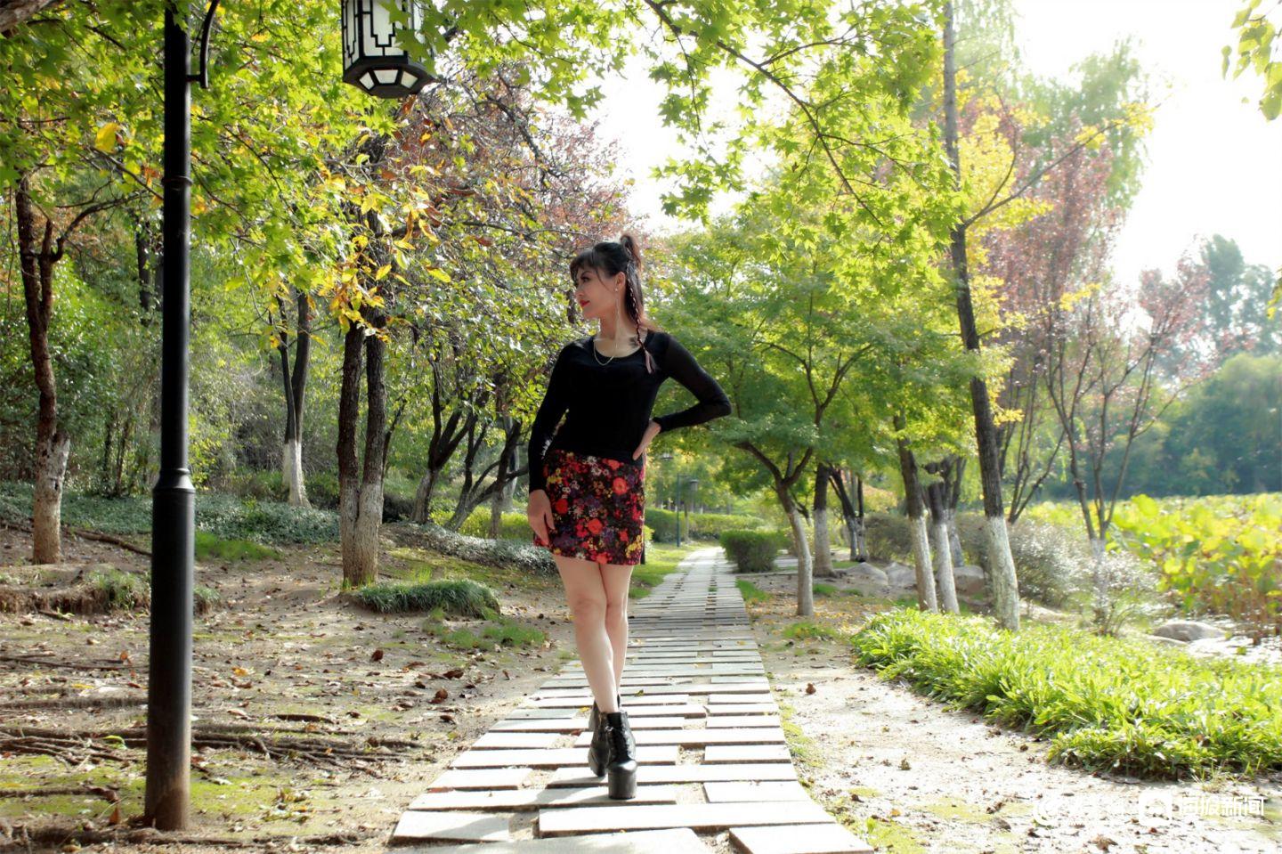厚底靴踏在石板路上,“咔嗒咔嗒”的声响漫开,倒像是替模特跟园子里的草木打招呼。风从树缝里钻出来,撩得裙摆轻晃,模特随手拨了拨,忽然看清这秋的颜色:亮色块早被揉进了绿与黄里,像模特身上的白与蓝,软乎乎的温柔裹着张扬的鲜活,连那双带着点“不好惹”劲儿的靴子,都成了恰到好处的点缀。本是各有脾气的物件,凑在一处,倒生出奇妙的和谐。